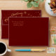 This RED elegant-themed Christmas envelope is perfect for mailing your holiday cards. On the Outside there is a return address that can be updated and a cute handcrafted pattern inside the envelope. It also features 3 Golden Trees, snowflakes, and snow dust with an elegant script calligraphy Merry Christmas on the flap. Check out the collection for many matching products .