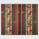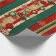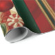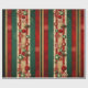 Christmas Wrapping Striped Paper in green burgundy and gold lined with holiday tree ornaments