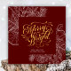 Modern Red Gold Script Pine Bough Floral Simple Holiday Card. Send customisable and personalised holiday greetings to friends, colleagues and family with this modern and elegant non-photo design festive, natural minimalist style cards! A beautiful gold floral greenery foliage with citrus, cinnamon, Christmas bells, holly and pine tree leaf line art frame surrounding holiday greetings of " Merry and Bright " in elegant calligraphy. On the bottom, features your custom greeting message from your family name in modern typography