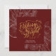 Modern Red Gold Script Pine Bough Floral Simple Holiday Card