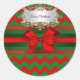 Modern Red Green Chevron Zig-Zag Ribbon Christmas Classic Round Sticker