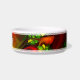 This is a heavy, durable bowl decorated with Tibbies of many colors, the perfect size for hungry/thirsty Tibs. The design is interesting and printing clear.