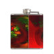Modern Red Green Floral Abstract Art Pattern #05 Hip Flask