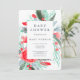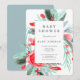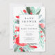 Modern red green floral watercolor baby shower invitation