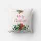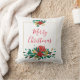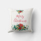 Modern Red Green & Gold Christmas Floral Cushion