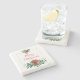 Stone coaster with a pretty floral bouquet in red, gold and green colours. A gold frame behind the flowers.