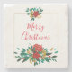 Modern Red Green & Gold Christmas Floral Stone Coaster