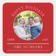 Modern Red Happy Holidays Round Photo Square Sticker