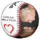 Modern Red Heart 2 Photo Collage Softball for her. Personalise it with 2 photos and names. The text is a trendy black and red typography. You can change any text on the softball or erase it. Great as a gift for mother, daughter or wife.