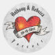 Modern Red Heart Add Names and Date Classic Round Sticker