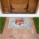 This door mat features a tattoo style heart coloured with an orange and red fractal design. The heart is adorned with a ribbon banner. There are two names above and a date on the banner for you to personalise. Text below reads "Welcome".