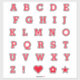 Modern alphabet with bold red monogram letters alphabet sticker pack for monogramming, personalising, customising, note writing, journals, notebooks, and more. This set also includes an exclamation point, heart, flower, and star.