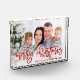 For a unique holiday gift this modern family photo block features a photo of your family with faux red glitter script that reads "Merry Christmas". Personalise with your name below. Designed by Susan Coffey.