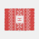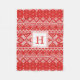 Modern Red Nordic Sweater Knit Monogram Holiday Fleece Blanket