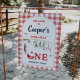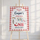 Modern Red Gingham Ofishally One 1st Birthday Welcome Sign