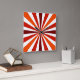 This clock features a fun striped design in shades of red and orange.