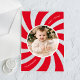 Spread holiday cheer with this modern acrylic Christmas card, featuring your photo encircled by a delicate white frame and set against a festive red and transparent peppermint swirl background. The phrase "Merry and Bright" is elegantly displayed in curved white lettering, adding a joyful and whimsical touch. Personalise this peppermint swirl holiday card with your family name to make it uniquely yours. Perfect for sharing your warm wishes, this custom holiday photo card blends contemporary design with classic holiday charm.