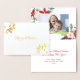 This Christmas holiday card features a modern floral design and real gold foil on the front. Personalise the inside with your own photo and text.