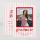 Modern Red & Pink Stripes Photo Graduation Party Invitation