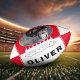 Modern Red Player Fan Name Photo Football. Custom football with a name and photo in red and white colors. A perfect gift for a football player. Great gift for a birthday or Christmas.