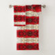 Modern Red Poinsettias and White Lights stripes Bath Towel Set