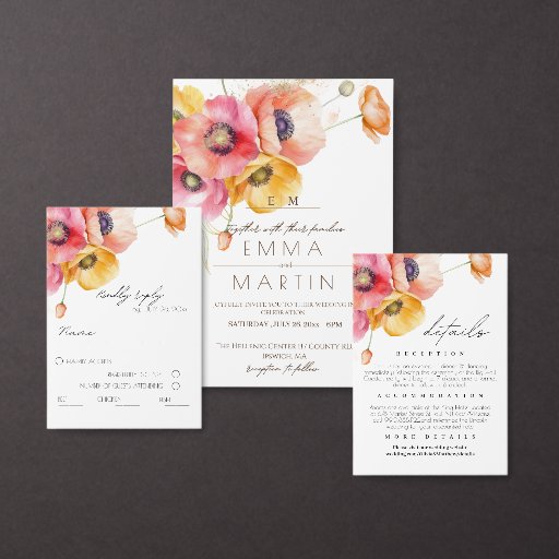 Modern Red Poppies Floral Wedding Invitation