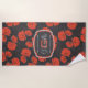 Modern Red Poppy Pattern Monogram on Slate Grey Beach Towel