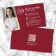 Modern Burgundy Professional QR Code Photo Logo Business Card. This sleek and stylish business card features a rich maroon or burgundy red background on both sides, giving it a bold and polished look with a touch of warmth. White fonts and accents provide a clean contrast, keeping the overall design modern and minimal. The front showcases your photo, name, title or business name, and contact info for a strong and professional impression. On the back, there's a scannable QR code, social media icons, and the phrase "Connect with us!" to help clients and contacts engage with you easily. Ideal for a wide range of professionals, this card is especially great for those wanting something sharp yet unique. Everything is customisable—update the text, colours, or layout to suit your brand and style.