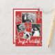 A simple modern red rustic design featuring faux oak snowflakes and your 4 photo collage makes for unique custom Christmas photo postcards. From personal greetings to corporate business mailings, these custom holiday postcards will bring the cheer. The new modern rustic is sleek and sophisticated with accents of natural materials while crisp white typography across the bottom of the traditional Christmas red cards proclaims JOYFUL WISHES in a chunky script font with space for your name and year below. Postcards reverse to reveal a text template in red for your names and custom holiday greeting accented by a single rustic oak wood snowflake in the upper left hand corner and a thin border of matching bright red around the edges. Choose four of your favorite photos to upload and add to the simulated oak wood frames for beautiful personalized Christmas postcards. Accented by a scatter of 5 matching snowflakes, these new modern red rustic holiday postcards with your family pictures is a lovely way to send the holiday joy. Browse my shop for matching Modern Red Rustic items that coordinate with this stylish multi photo postcard.