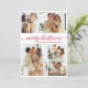 Modern Red Script 5 Photo Collage Christmas Holiday Card