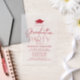 Celebrate your graduate’s achievement with our Modern Red Script vellum graduation party invitations. Featuring a bold red graduation cap at the top and "Graduation Party" in elegant red script typography, this design is set against a sheer vellum background for a sleek and contemporary look. Easily personalise with the graduate’s name and party details to create a unique and stylish announcement. Perfect for both high school and college graduates, these minimalist vellum invitations offer a sophisticated way to celebrate this special milestone.