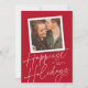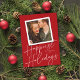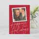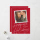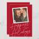 This modern yet elegant new year's photo card features a large script "Happiest Holidays" in white over a classic red colour background with a single square photo. On the back of the card is the same red colour. **ALL colours are customisable - background colour, text colour, even the calligraphy script colour! Just click "customise design further" in the dropdown menu.**