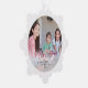 Modern Red Script Minimal 2 Photo Merry Christmas Tree Decoration Card