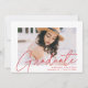 Invite guests to celebrate the graduation with our modern photo graduation party invites. The trendy graduation party invites feature the graduate's photo with "Graduate" in a red modern calligraphy script overlay. Personalize the front of the invites by adding the graduate's name, school name, and graduation year. The invite reverses to display your graduation party details and a trendy red and white dotted geometric pattern.