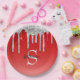 Modern Red Silver Glitter Drips Monogram Paper Plate