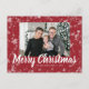 Modern Red Snowflake Photo Christmas Postcard