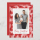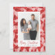 Send holiday greetings to friends and family with these modern Christmas photo cards. The design features your favourite vertical family photo framed in white with a background of frosted watercolor stained glass in shades of pink, red, and burgundy. "Merry Christmas" is displayed below in a dark red, hand-lettered brush script. Personalise the reverse side of the card with two additional photos framed in white against a solid red background. The festive and unique Christmas cards are sure to impress everyone on your Christmas card list this holiday season.