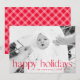 Share holiday cheer with this modern holiday photo card featuring your favourite horizontal photo with “Happy Holidays” displayed in bold red typography. Personalise with your name and year for a clean, stylish finish. The reverse side showcases a coordinating red and white plaid pattern for a festive yet timeless touch. A perfect choice for families who love minimalist design with a classic holiday feel.