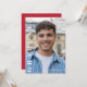 Celebrate your graduate with this modern red graduation photo card featuring bold vertical “Graduate” typography and a stylish full-photo portrait layout. The front highlights the graduate’s photo with elegant vertical text, while the back showcases a classic laurel wreath graduation emblem with space for class year, school name, and graduation party details.