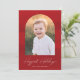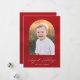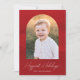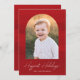 Share your holiday cheer in style with this modern red watercolor arch photo holiday card. Your favorite picture is beautifully framed inside a trendy arch design, accented with bold red watercolor brush strokes. The front displays “Happiest Holidays” in elegant white script lettering with your family’s name below. The back continues the chic look with a coordinating red watercolor brush stroke design. A stylish and festive way to send Christmas or holiday greetings.