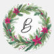 Modern Red Watercolor Christmas Wreath Monogram Classic Round Sticker