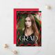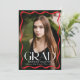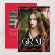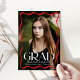 Celebrate your high school or college graduate with this stylish graduation announcement, featuring a full-bleed vertical photo framed by a modern red wavy border. The word "Grad" stands out in bold white lettering, while the graduate’s name, school, and class year add a personal touch. The back showcases a horizontal photo with space for a custom message, making it the perfect way to share this special milestone with family and friends.