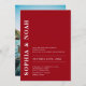 This invitation features a chic red background with a minimalistic design. The names of the couple are highlighted in bold, elegant typography, adding a touch of modern elegance to the invitation. Add your photo on the back.