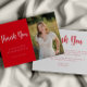 A modern classic graduation thank you card with a simple red and white theme. The photo is for placement purposes only and can be replaced with any photo of your choice. Customise text on the front and back of the card to create your perfect graduation thank you. #graduationthankyou #classof #highschoolgraduation