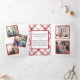 Modern Red White Plaid Eight Photo Tri-Fold Holiday Card