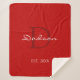 Modern Red White Script Family Monogram Name Sherpa Blanket