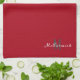 Show your style with this Modern Red White Script Monogram Personalised Name kitchen towel. It is designed with a solid dark red all-over-print background and initial is in grey and name is in white calligraphy script lettering. Makes a great gift idea for women or families who love to cook.