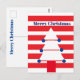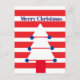 Modern Red & White Striped Christmas Tree Holiday Postcard