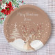 Celebrate in style with this cute modern reindeer Christmas party paper plates featuring white falling snow, christmas tree design. Perfect for holiday gatherings, customise easily. Matching items in my store UnuqieDesigns.