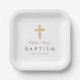 Modern Religious Cross Pink Script Girl Baptism Paper Plate
